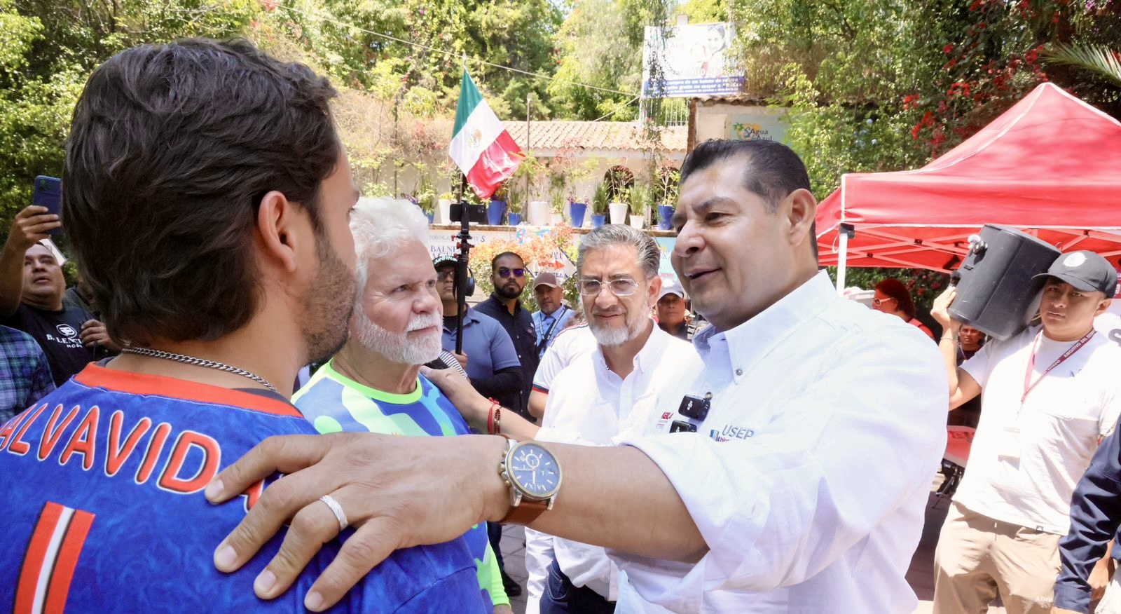 Entre el ambiente familiar que caracteriza al Balneario Agua Azul, Armenta Mier, verificó las condiciones de seguridad, así como la correcta implementación de las medidas preventivas para salvaguardar la integridad de las familias que acuden a este espacio recreativo y recordó momentos familiares personales en este espacio. «Es un balneario emblemático, mi papá me traía y yo a mis hijos», mencionó a las y los asistentes.