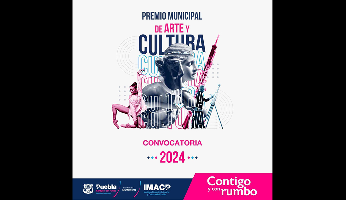 El Ayuntamiento de Puebla, a través del Consejo de Premiación del Instituto Municipal de Arte y Cultura (IMACP), invita a las y los poblanos a postularse para el “Premio Municipal de Arte y Cultura 2024”, convocatoria que estará abierta hasta el 20 de agosto.