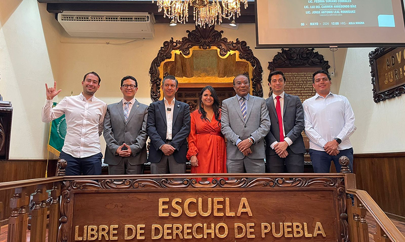 El candidato a la alcaldía por la ciudad de Puebla Rafael Cañedo Carrión tuvo un conversatorio con los estudiantes de la Escuela Libre de Derecho de Puebla al lado de los candidatos y ex alumnos de dicha institución Antonio Leal, Luz del Carmen Arredondo y Rodolfo Cortina.
