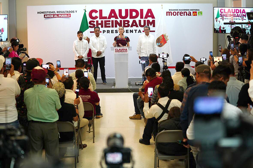 Comitán de Domínguez, Chiapas.– Apostar por la industrialización de la frontera sur para atender a los migrantes, así como el reconocimiento de los pueblos originarios, fueron los objetivos que Claudia Sheinbaum Pardo, candidata a la Presidencia de México por la Coalición “Sigamos Haciendo Historia” (Morena-PT-PVEM) presentó ante medios de comunicación locales y nacionales como parte fundamental para impulsar el desarrollo de Chiapas.