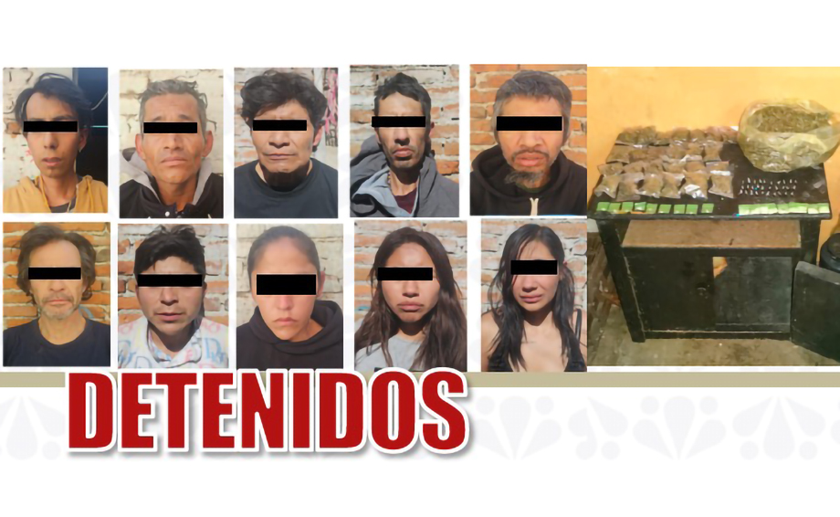 La Fiscalía General del Estado de Puebla (FGE), en coordinación con la Guardia Nacional (GN) y la Secretaría de Seguridad Pública Estatal (SSPE), desarticuló una banda delictiva dedicada al narcomenudeo y al robo a transeúntes que operaba al sur de la ciudad de Puebla. Como resultado de un cateo autorizado judicialmente, fueron detenidas 10 personas, siete hombres y tres mujeres, además del aseguramiento de diversas sustancias ilícitas.