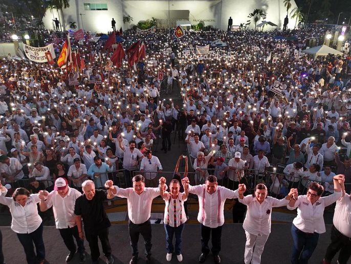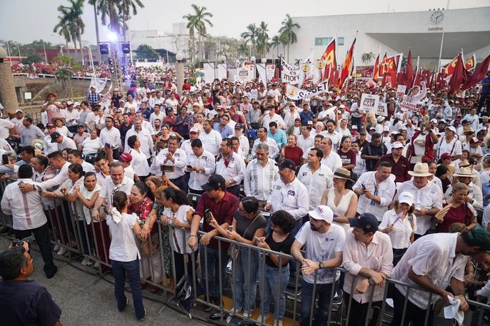 | Durante su cierre de campaña, Javier May Rodríguez, candidato a la gubernatura del estado de Tabasco, se comprometió a seguir fortaleciendo la Cuarta Transformación en el estado y reiteró que llamado es a seguir haciendo historia en la Presidencia de la República, en el Gobierno estatal, así como en la Cámara de Senadores y Diputados. ’’Vamos con alegría, con esperanza a las urnas, porque nuevamente el triunfo será del pueblo, vamos a seguir haciendo historia en Tabasco, vamos a ganar la Presidencia de la República con la doctora Claudia Sheinbaum Pardo, vamos a ganar la gubernatura del estado, vamos a ganar las senadurías, las diputaciones federales, vamos a ganar las diputaciones locales y las Presidencias Municipales, todos y todas a votar’’, expresó. |