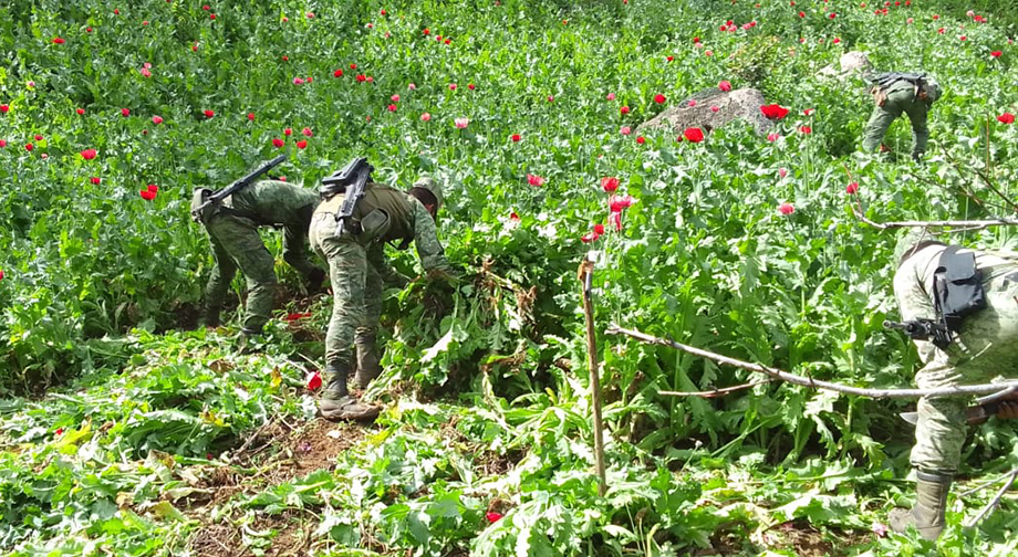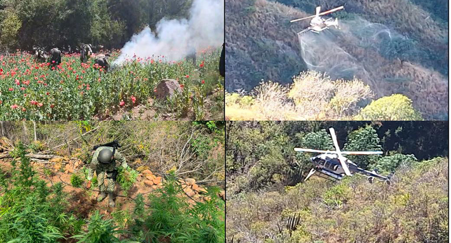 *En Sinaloa, Chihuahua, Durango y Guerrero, elementos del Ejército Mexicano, destruyeron 284 plantíos de amapola en 27 hectáreas y 66 plantíos de marihuana en 6 hectáreas