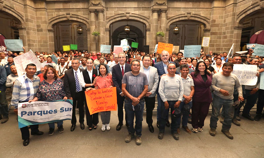 “Somos gente de palabra. Respetamos al Sindicato, como dijimos que lo íbamos a respetar desde el día uno; y así lo respetaremos hasta el día que me vaya que es en dos años 8 meses. Seguiremos trabajando de la mano de ustedes, porque son parte importante, ustedes son la cara del Ayuntamiento, así como todas las secretarías, tenemos gente que da la cara, ustedes son gente importantísima para el Ayuntamiento, tenemos que seguir trabajando para que a Puebla le vaya bien, para que al Sindicato le vaya bien”, expresó.