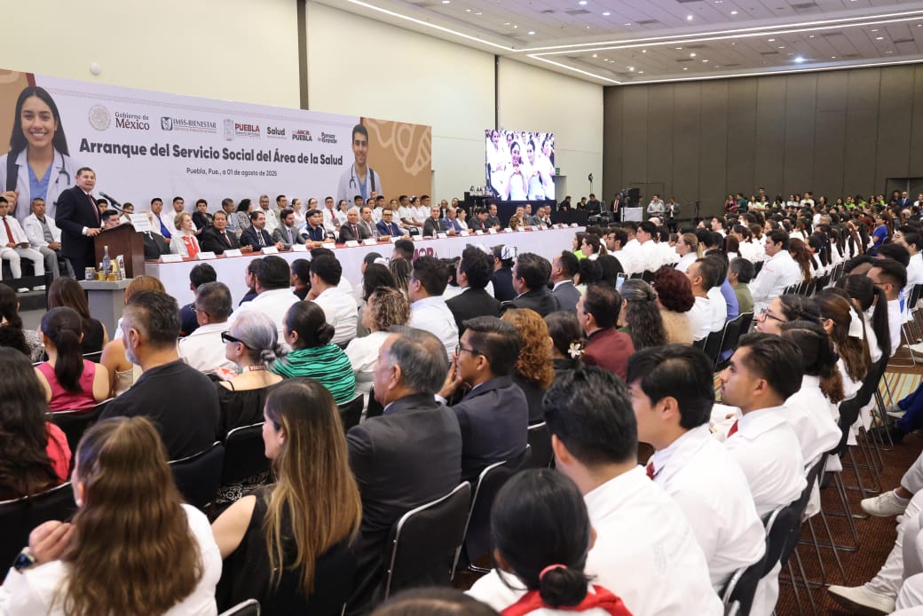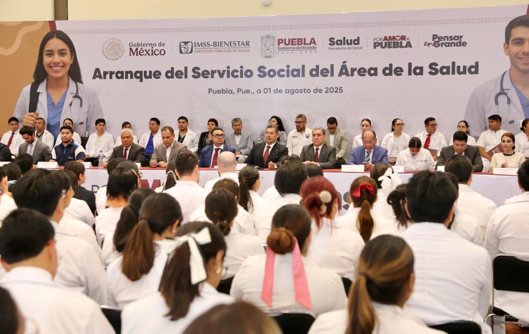 El gobernador de Puebla, Alejandro Armenta, encabezó el arranque oficial del Servicio Social del Sector Salud, donde más de 4 mil estudiantes de más de 150 instituciones educativas iniciarán su formación profesional en hospitales y unidades médicas de todo el estado, gracias al convenio entre el Gobierno del Estado y el IMSS-Bienestar.