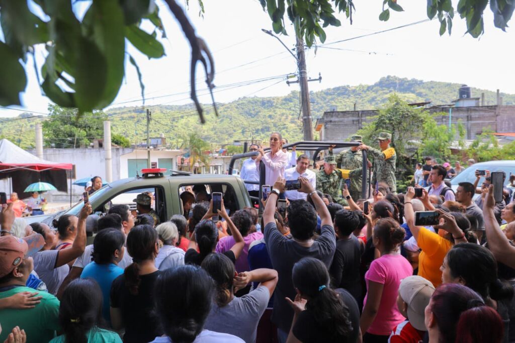 Desde este punto, la mandataria escuchó de primera mano a las familias damnificadas, constató personalmente las condiciones en que se encuentran las viviendas, caminos y carreteras y refrendó el compromiso del Gobierno de México para brindar atención oportuna y apoyo integral a quienes más lo necesitan.