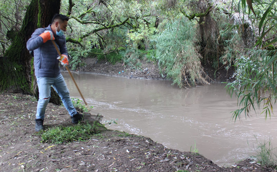 Con la participación de trabajadoras y trabajadores de la Comisión, encabezada por el director general, Lauro Sánchez López, así como personal de este parque, fue realizada la jornada con acciones de deshierbe, retiro de basura y material vegetativo, poda y limpieza general en ambas riveras del río, para frenar su contaminación.