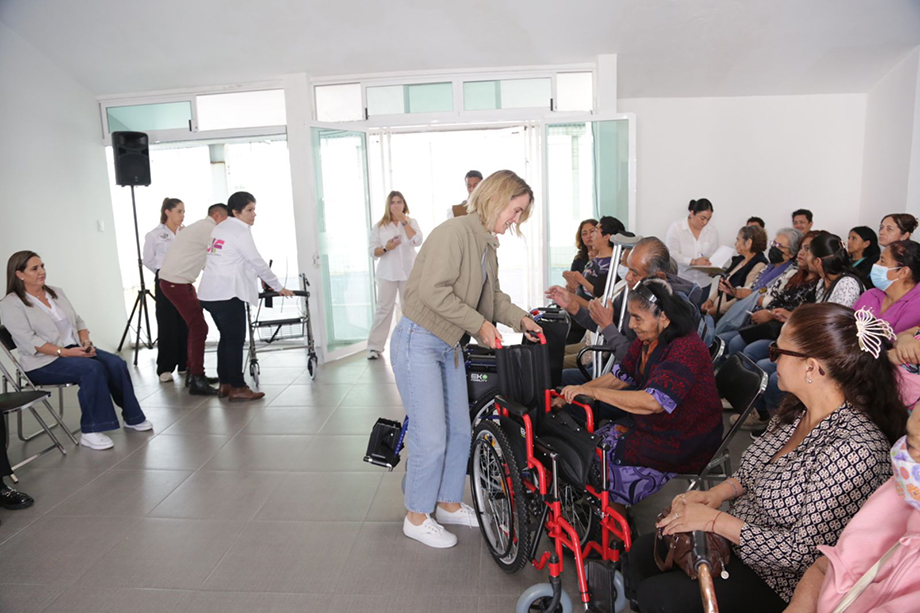 En el evento realizado en Casa de Día se beneficiaron a 60 personas, entre adultos y adultos mayores, entregando un total de 46 sillas de ruedas, cinco andaderas ortopédicas, ocho bastones de cuatro puntos y un bastón guía para adulto.