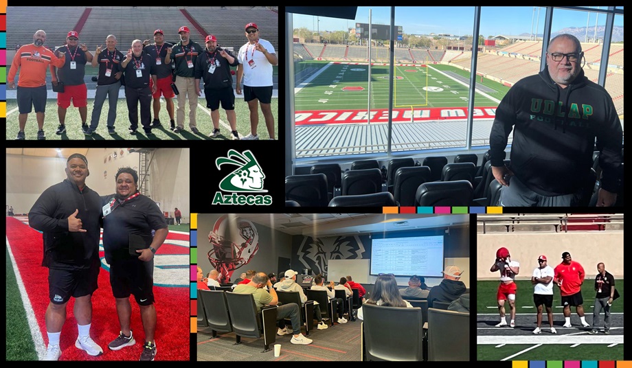 El staff de coacheo de los Aztecas de la Universidad de las Américas Puebla (UDLAP) viajó a Nuevo México para participar en una clínica de futbol americano y asistir a las prácticas de New Mexico Lobos, equipo que participa en la NCAA División I.