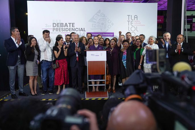 | Ciudad de México.- ’’Me comprometo con el pueblo de México a gobernar para todos y para todas, de llevar a México por el camino de la seguridad, de la paz y de la prosperidad compartida’’, fue el mensaje que Claudia Sheinbaum Pardo, candidata a la Presidencia de México por la Coalición “Sigamos Haciendo Historia” (Morena-PT-PVEM) dirigió a los mexicanos y mexicanas durante el Tercer Debate Presidencial, en donde hizo un llamado a defender la continuidad de la 4T en las urnas el próximo 2 de junio. |