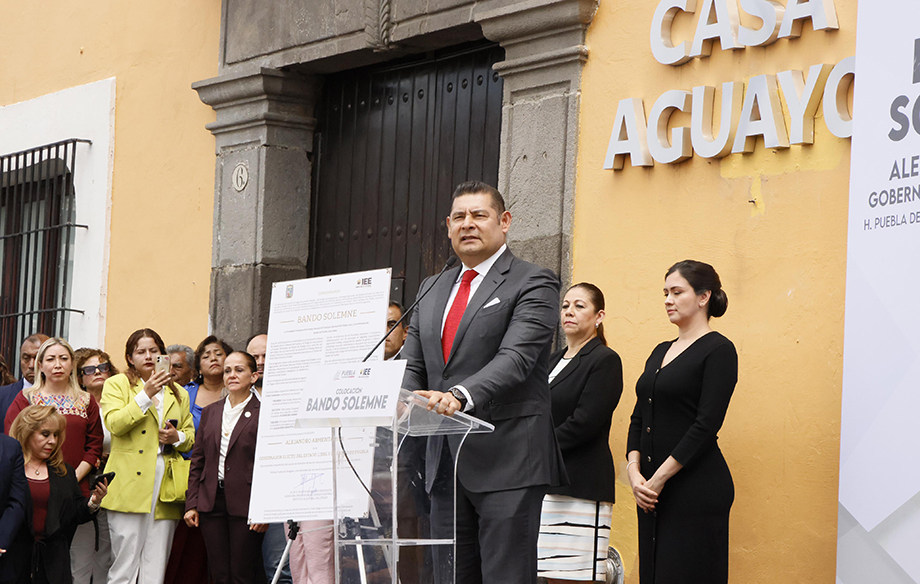 “El concepto de consagración al servicio público se entiende cuando se piensa en grande como lo piensan las y los poblanos. Esta etapa coincide con un momento histórico: el relevo del presidente Andrés Manuel López Obrador, el hombre que sacudió las instituciones en México y permitió el renacimiento del nacionalismo y la soberanía, priorizando a México. Me quedo con una frase que recoge la filosofía del poder: el poder solo se vuelve virtud cuando se pone al servicio de los demás; cuando se usa para atropellar derechos, se convierte en tiranía. Por ello, honraremos el ejemplo del presidente y lo haremos en Puebla», enfatizó, Alejandro Armenta, gobernador electo, durante la colocación del primer Bando Solemne en Casa Aguayo, sede del Poder Ejecutivo, ante la presencia del mandatario Sergio Salomón Céspedes y Blanca Yassahara Cruz García Consejera presidenta del IEE.