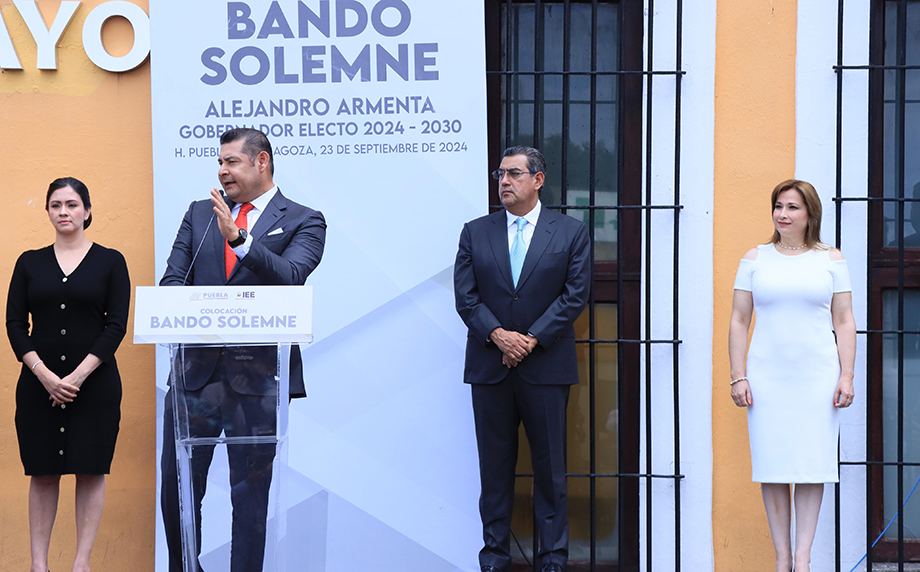 Acompañado también por su esposa, Ceci Arellano de Armenta, y su hijo, Alejandro Armenta Arellano, el gobernador electo, destacó la generosidad, el sentido de estadista y el dinamismo del gobernador Sergio Salomón Céspedes, quien ha puesto un ritmo acelerado al desarrollo en Puebla. El Bando Solemne simboliza la legitimidad y el respeto hacia la decisión democrática del pueblo. Es una declaración pública que reconoce los resultados del proceso electoral y la fortaleza de nuestras instituciones, además de recordarnos la responsabilidad de gobernar y velar por los intereses de las y los ciudadanos, con la misión de continuar el progreso en unidad por Puebla.